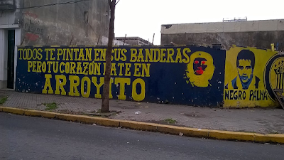 Su imagen en un paredón de barrio Arroyito.